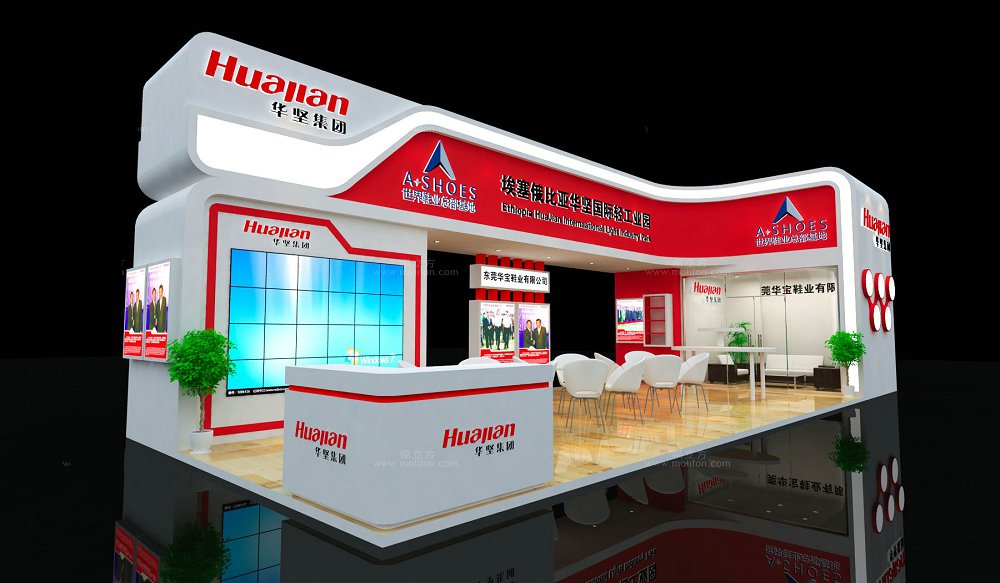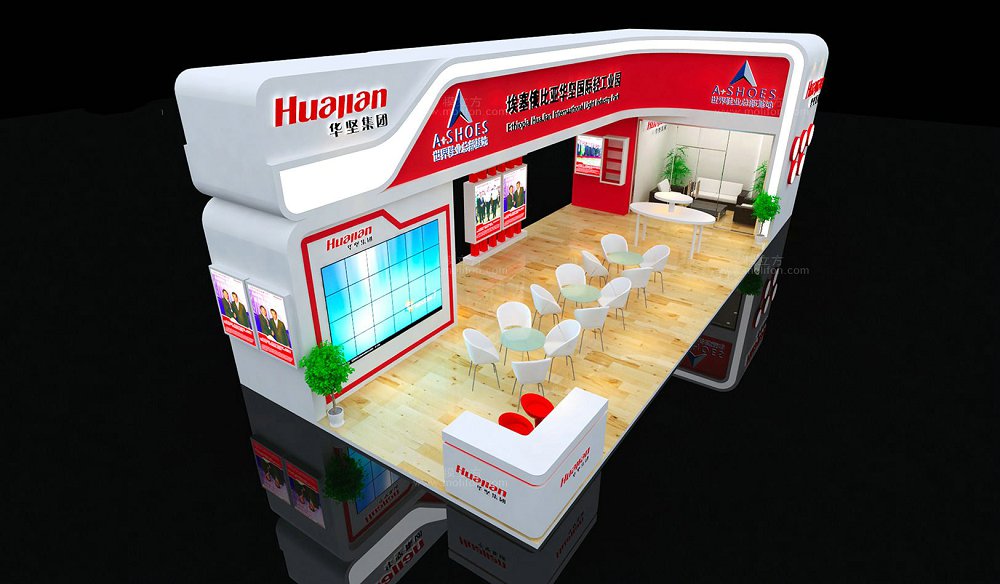 契合華堅(jiān)集團(tuán)的品牌形象和產(chǎn)品特性,采用矩形結(jié)構(gòu),再搭配燈具燈光的效果,襯托出展位大氣、豪華的氛圍,突出一種簡(jiǎn)約、時(shí)尚的品味。