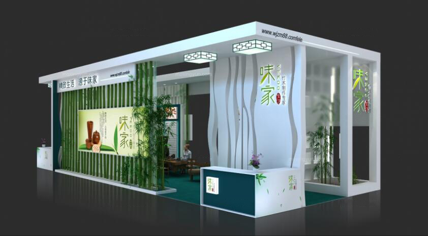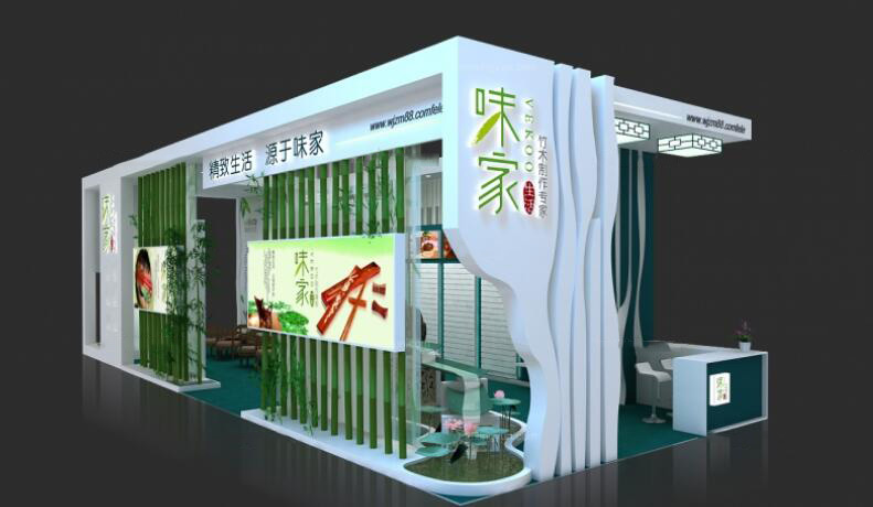 契合味家的品牌形象和產(chǎn)品特性,采用矩形結(jié)構(gòu),再搭配燈具燈光的效果,襯托出展位大氣、豪華的氛圍,突出一種簡約、時(shí)尚的品味。