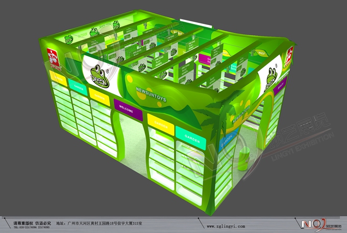 巧妙的運(yùn)用綠色作主色調(diào),著重突出品牌和產(chǎn)品的展示,使整個(gè)展位大氣又明快。
