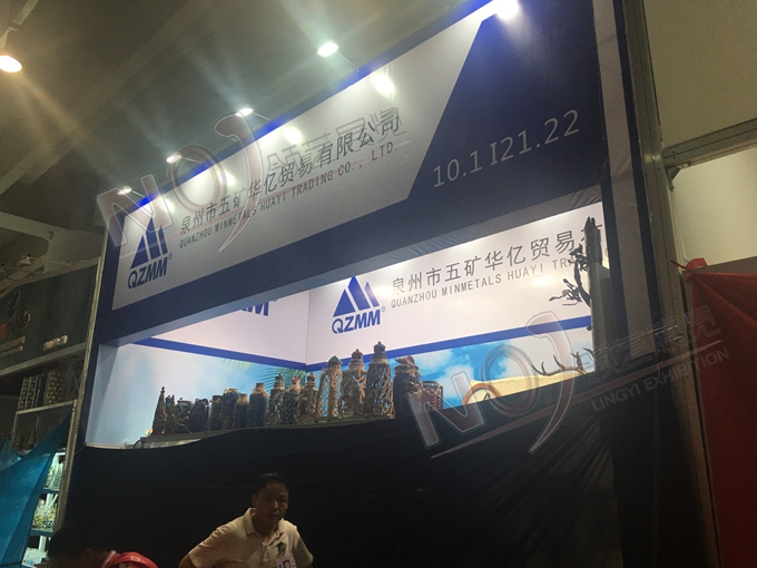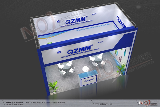 契合泉州五礦集團的品牌形象和產(chǎn)品特性,采用矩形結(jié)構(gòu),再搭配燈具燈光的效果,襯托出展位高端、時尚的氛圍,突出一種現(xiàn)代、大氣的時尚品味。