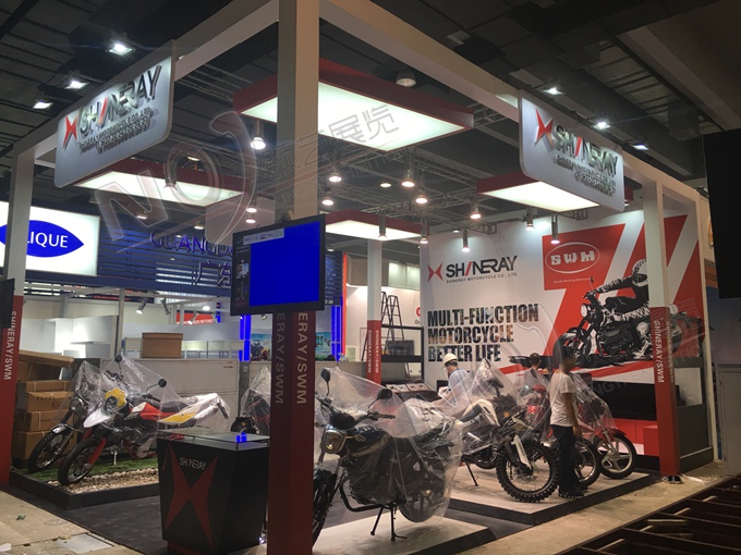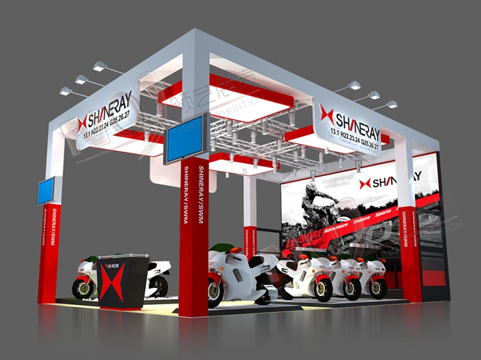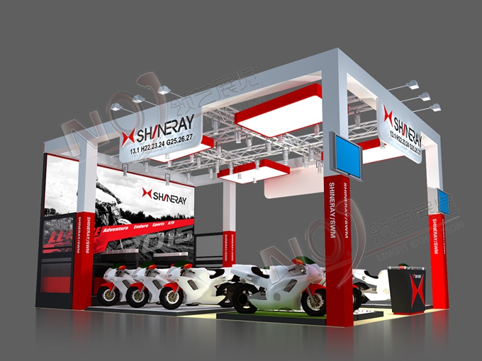 契合鑫源摩托的品牌形象和產(chǎn)品特性,采用矩形結(jié)構(gòu),再搭配燈具燈光的效果,襯托出展位簡(jiǎn)約、時(shí)尚的氛圍,突出一種現(xiàn)代、簡(jiǎn)約的時(shí)尚品味。