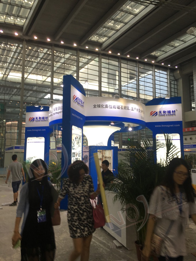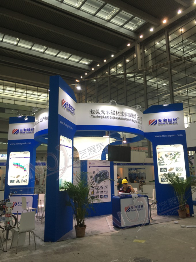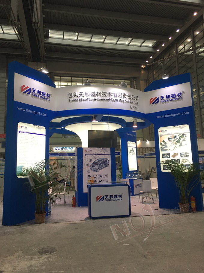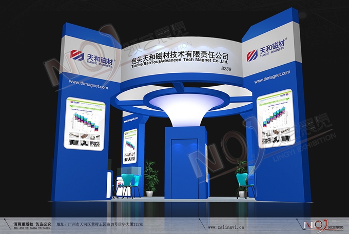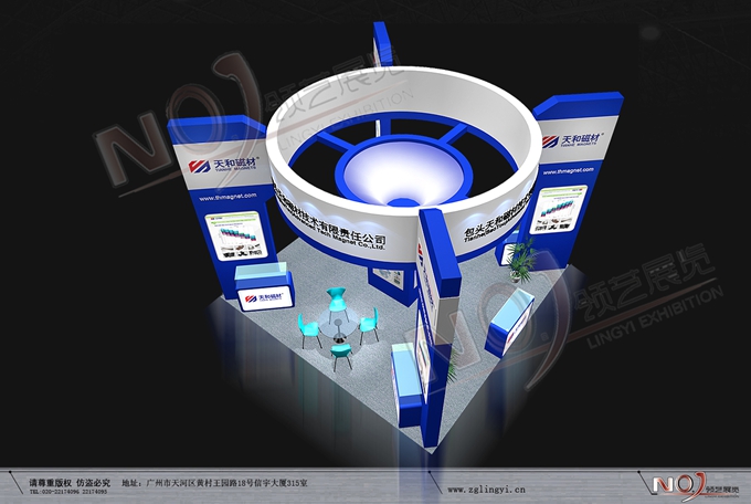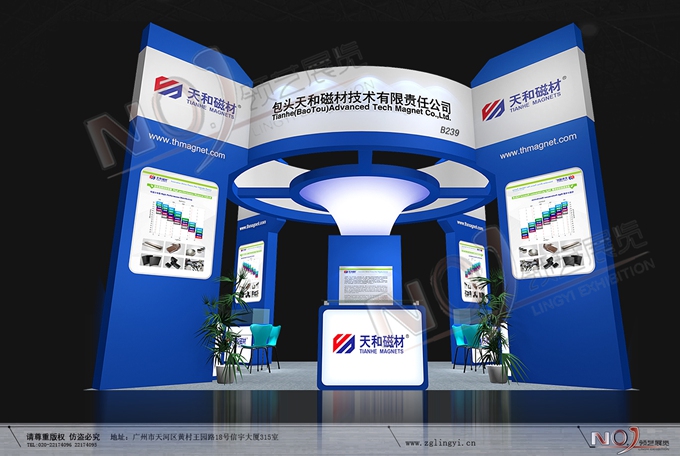 契合天和磁材的品牌形象和產(chǎn)品特性,采用曲線、框型結(jié)構(gòu),再搭配燈具燈光的效果,襯托出展位簡(jiǎn)約、舒適的氛圍,突出一種躍動(dòng)、簡(jiǎn)約的時(shí)尚品味。