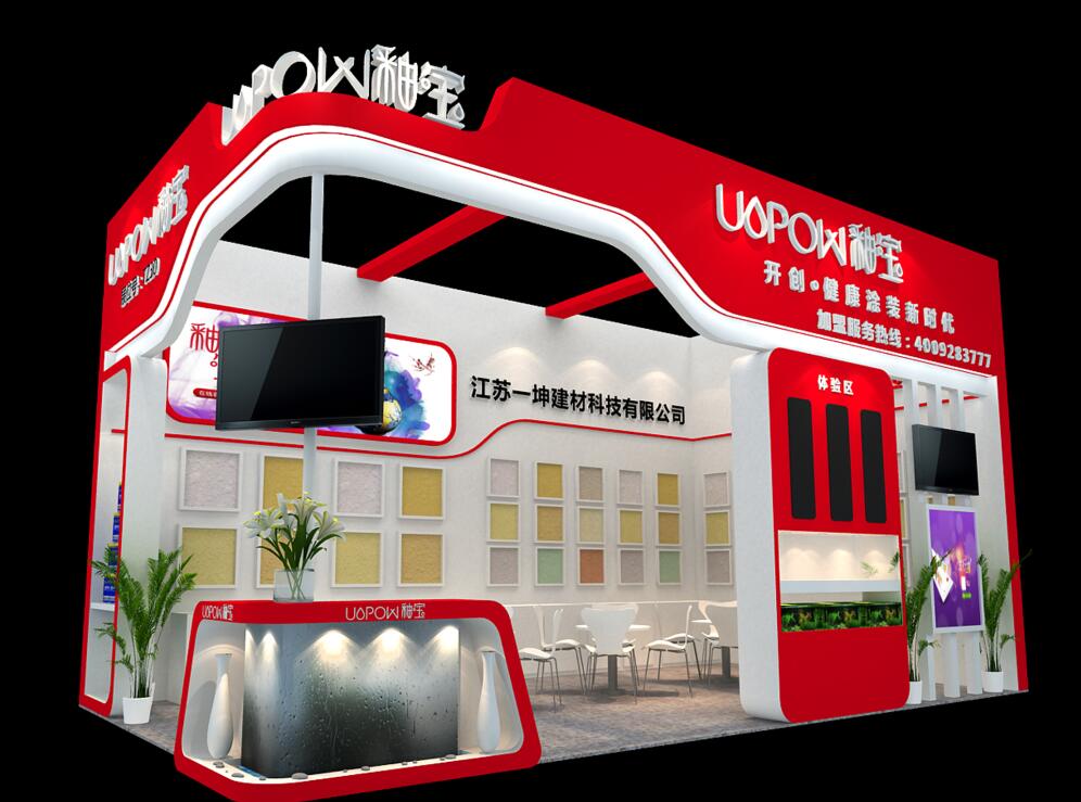 契合江蘇一坤品牌形象和產(chǎn)品特性,利用紅色突出產(chǎn)品,再搭配燈具燈光的效果,襯托出展位現(xiàn)代、突出一種現(xiàn)代、高端的時(shí)尚品味。