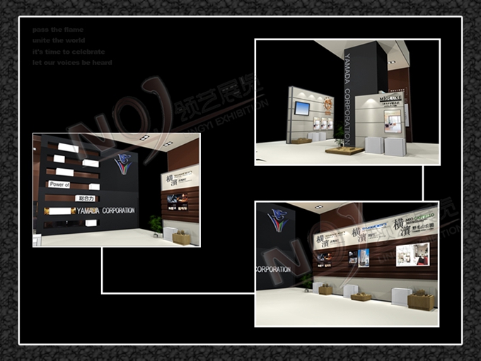 契合的山田品牌形象和產(chǎn)品特性,采用矩形結(jié)構(gòu),再搭配燈具燈光的效果,襯托出展位高端、莊重的氛圍,突出一種現(xiàn)代、歐美的時尚品味。