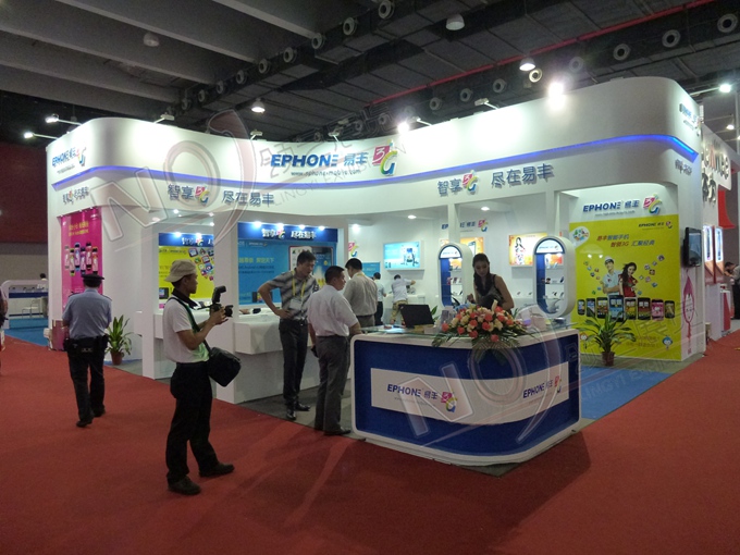 契合易豐手機(jī)的品牌形象和產(chǎn)品特性,采用框型結(jié)構(gòu),再搭配燈具燈光的效果,襯托出展位簡約、便捷的氛圍,突出一種精致、簡約的時(shí)尚品味。