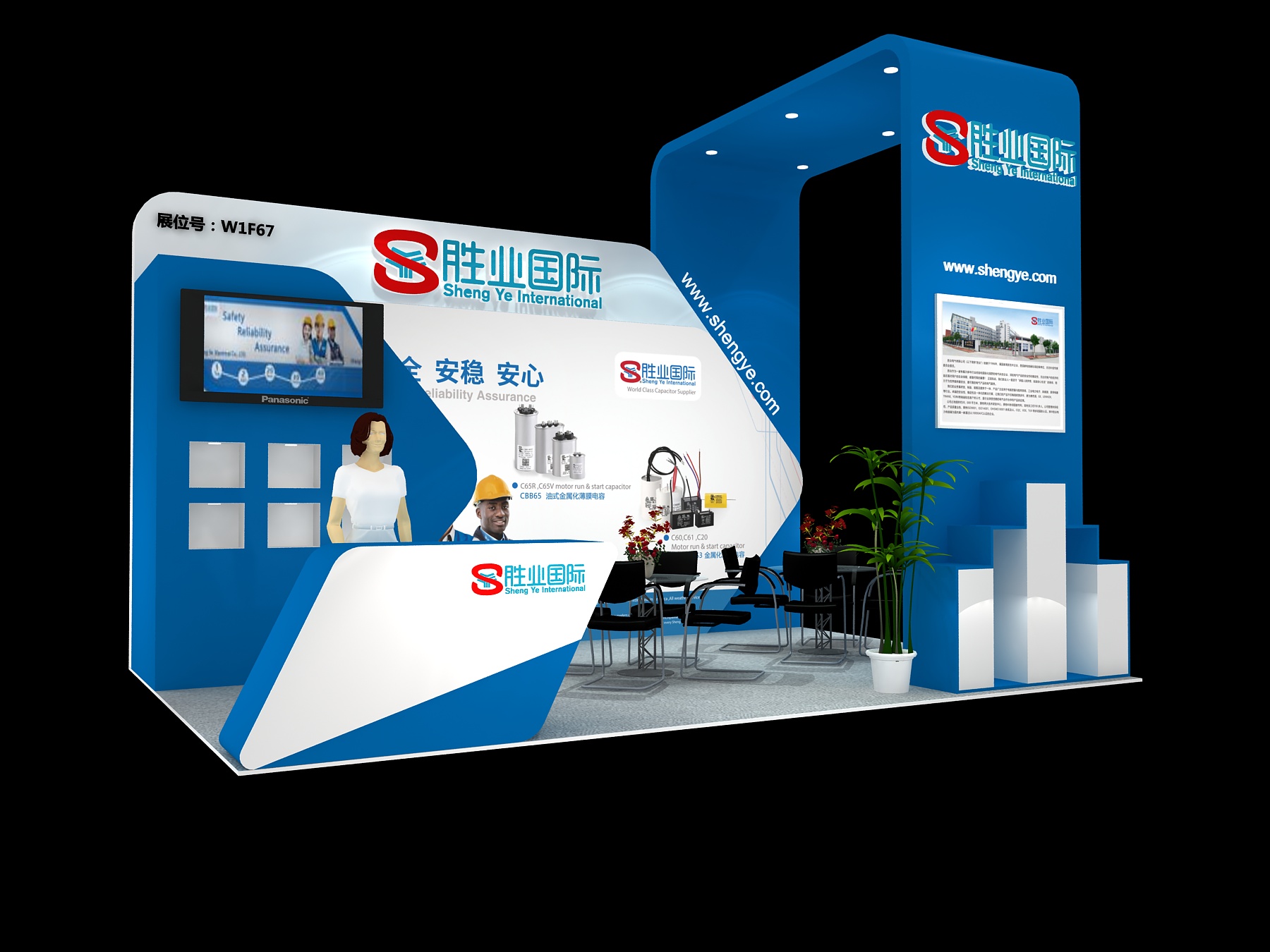 契合勝業(yè)的品牌形象和產(chǎn)品特性,采用開放式的造型,再搭配燈具燈光的效果,襯托出展位現(xiàn)代、清新氛圍,突出一種現(xiàn)代、高端的時尚品味。