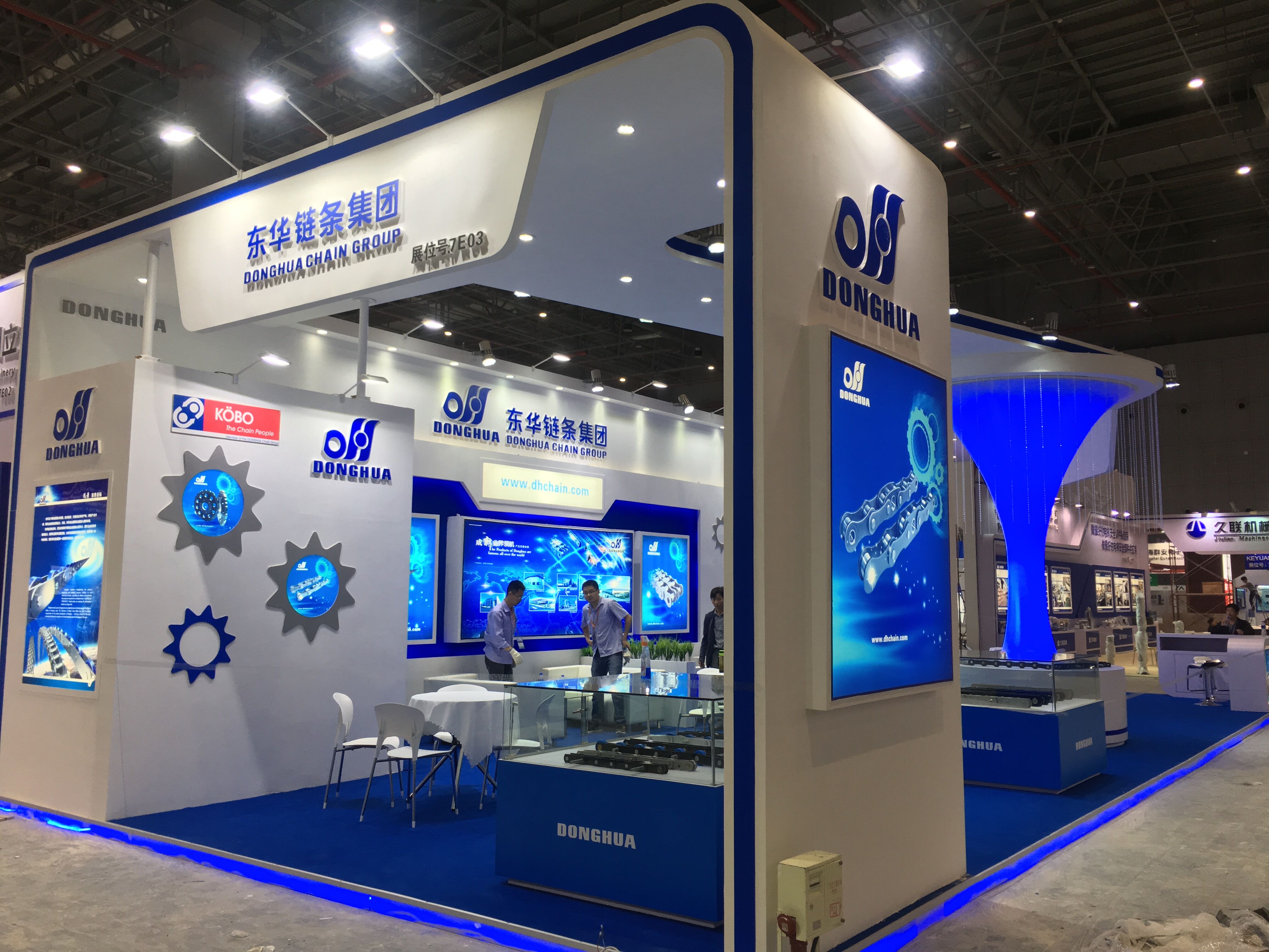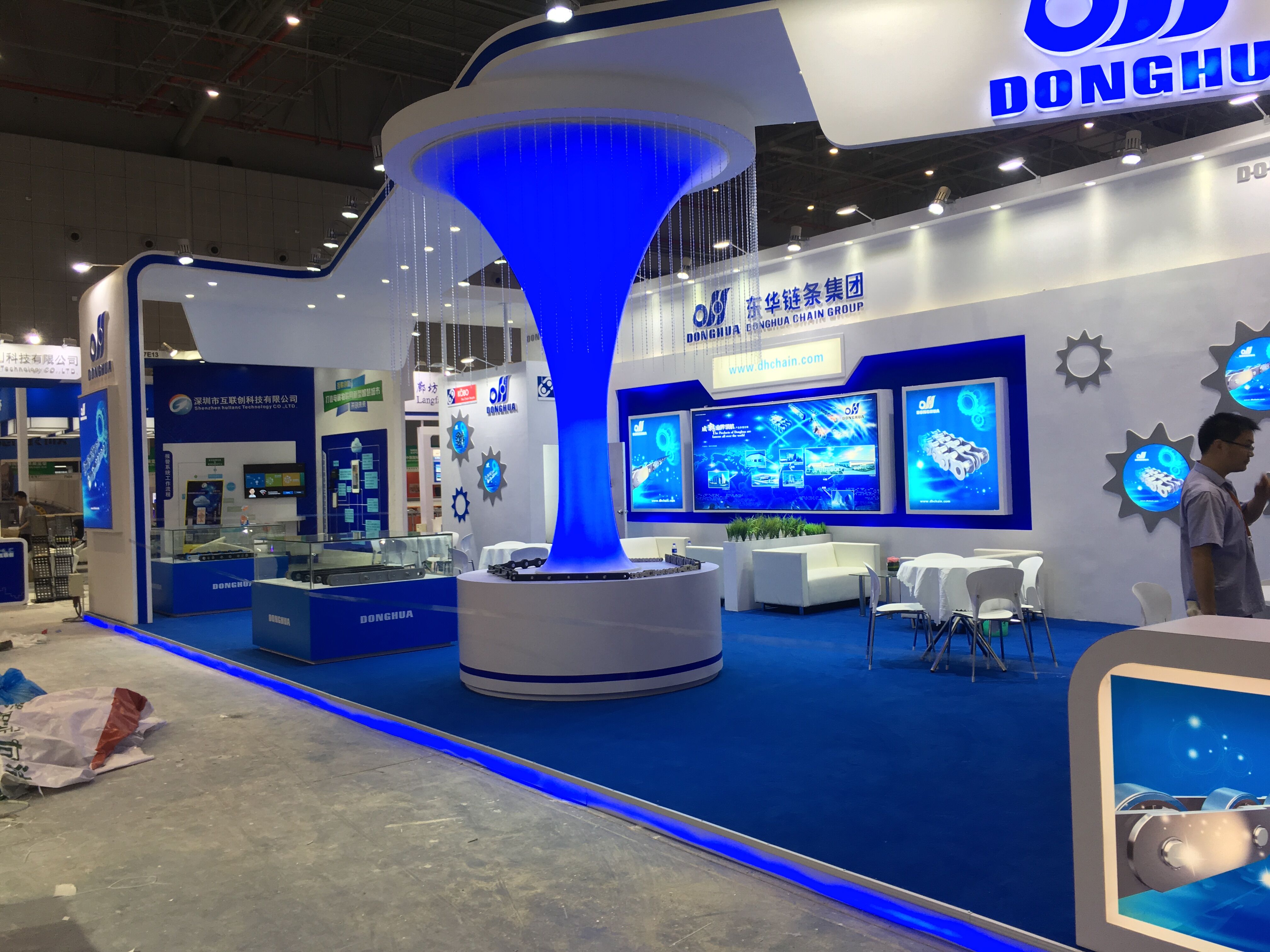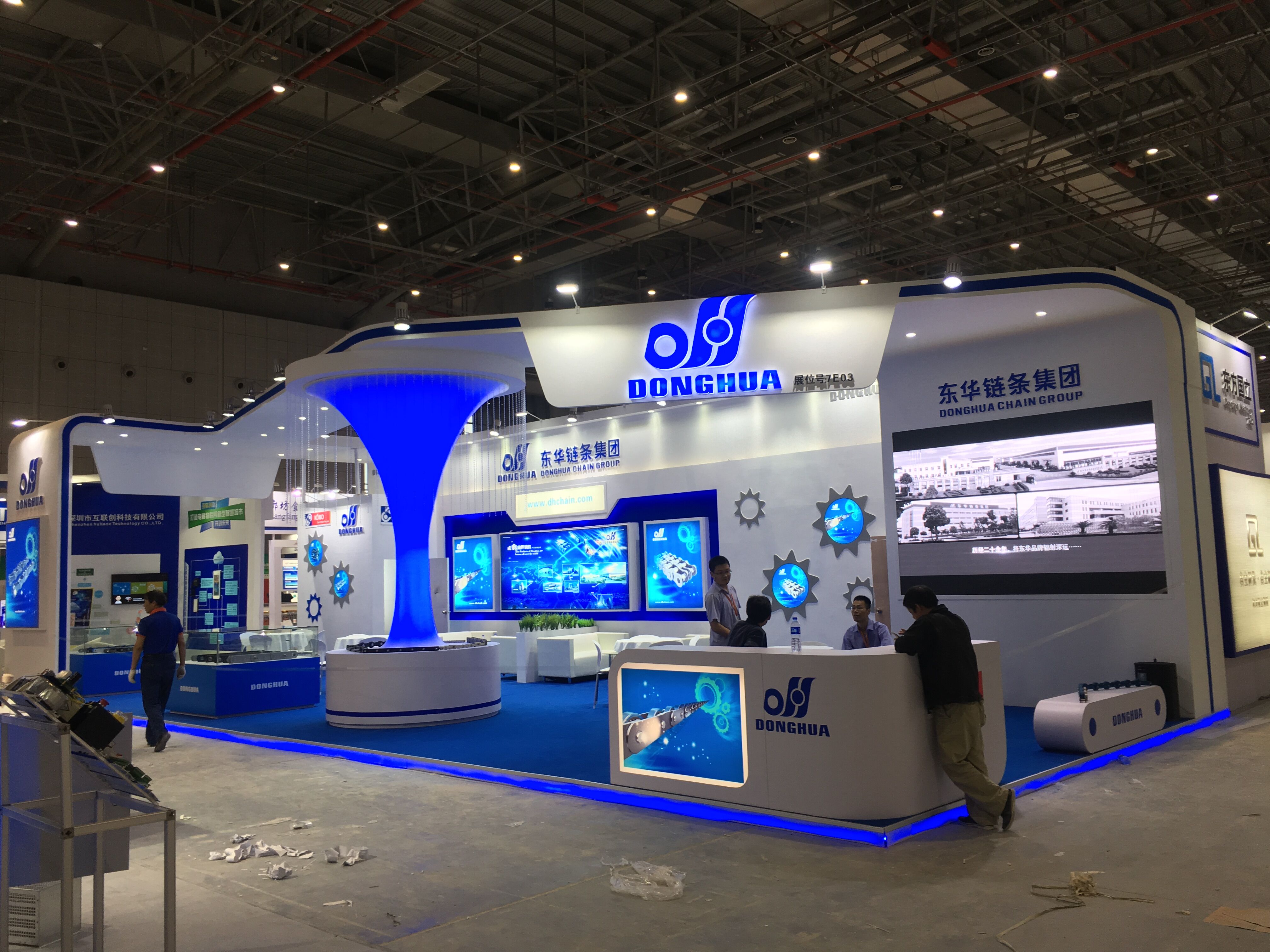 契合東華鏈條的品牌形象和產(chǎn)品特性,采用開(kāi)放式式的造型,再搭配燈具燈光的效果,襯托出展位現(xiàn)代、清新氛圍,突出一種現(xiàn)代、高端的時(shí)尚品味。