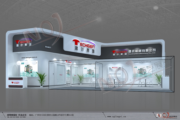 契合建技的品牌形象和產(chǎn)品特性,采用矩形結(jié)構(gòu),再搭配燈具燈光的效果,襯托出展位簡約、舒適的氛圍,突出一種現(xiàn)代、高端的時尚品味。