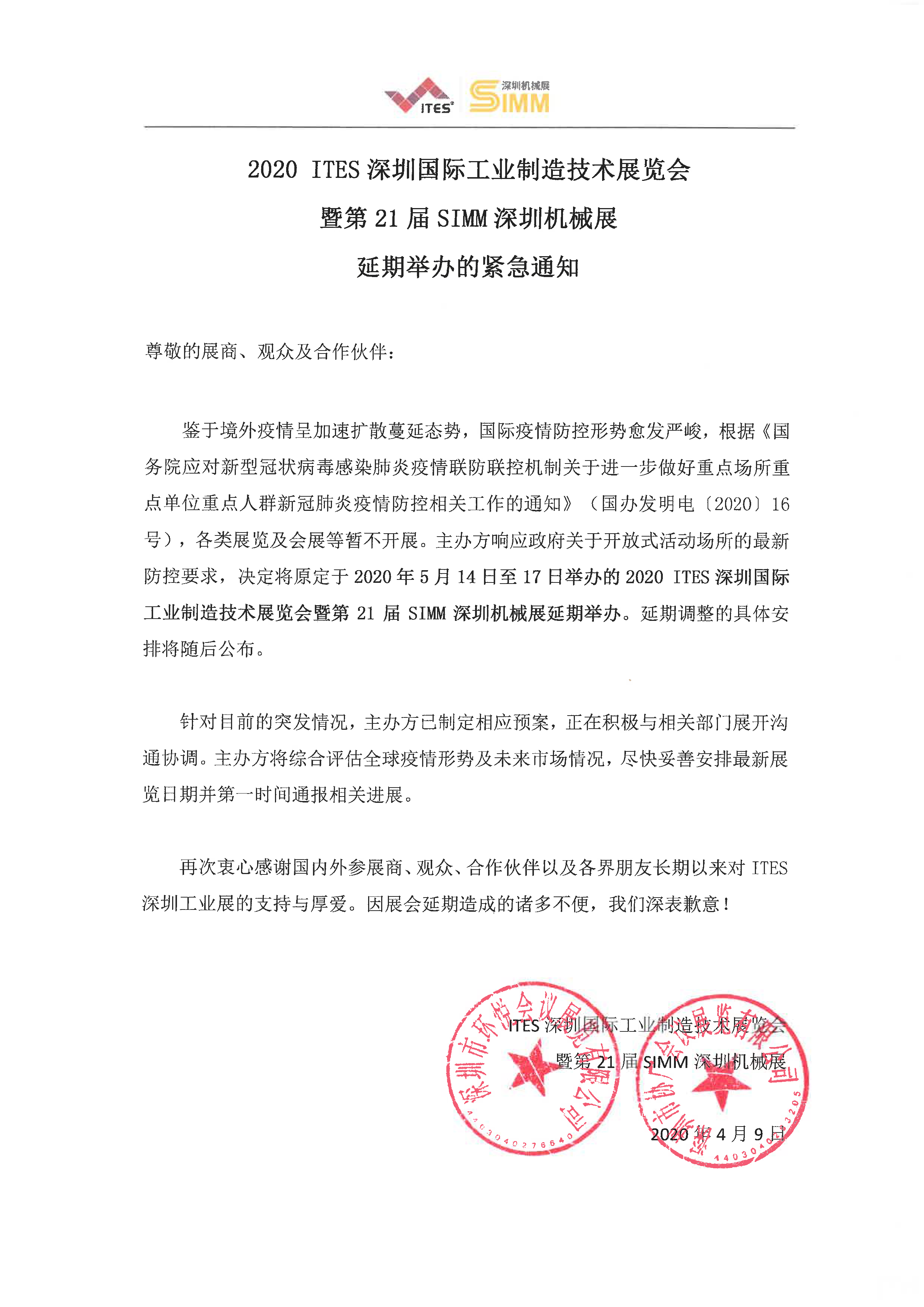 根據機械展設計搭建公司領藝展覽了解到,ITES深圳工業(yè)展暨第21屆SIMM深圳機械展再次延期。如需機械展設計請聯系領藝展覽,希望我們能在機械展搭建上為您添磚加瓦,祝各位朋友收獲多多,滿載而歸!