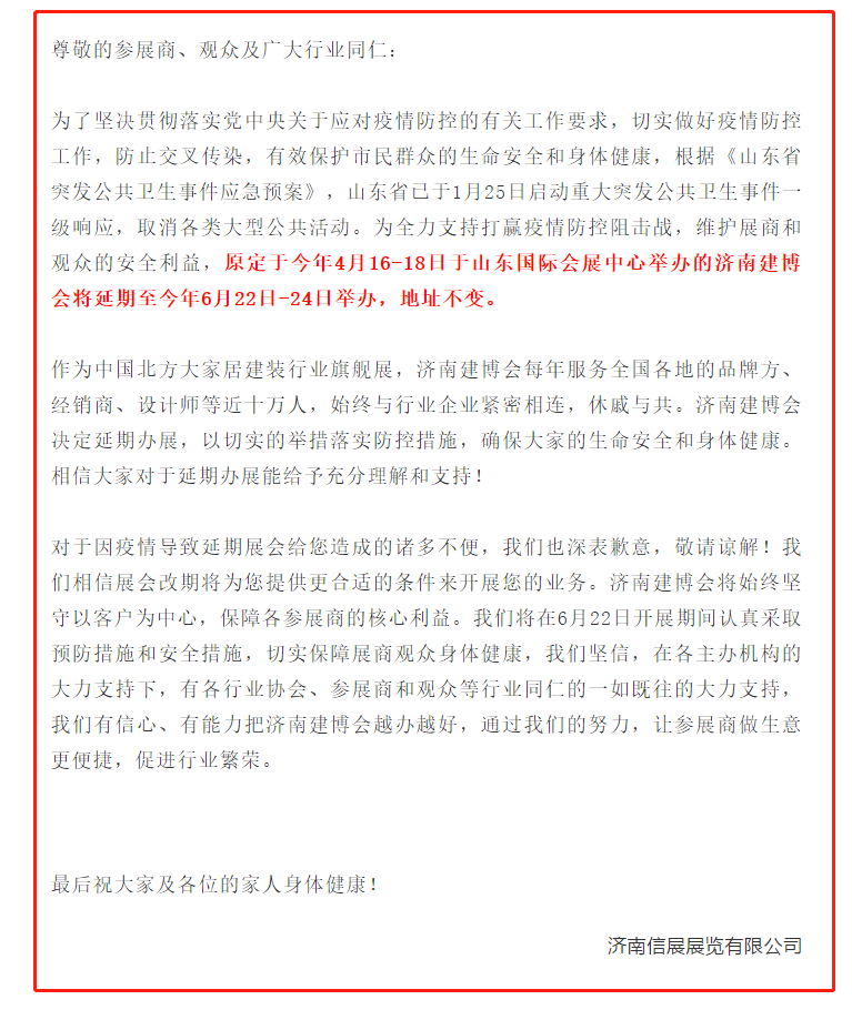 第23屆濟(jì)南國際機(jī)床展覽會(huì)延期舉辦的通知