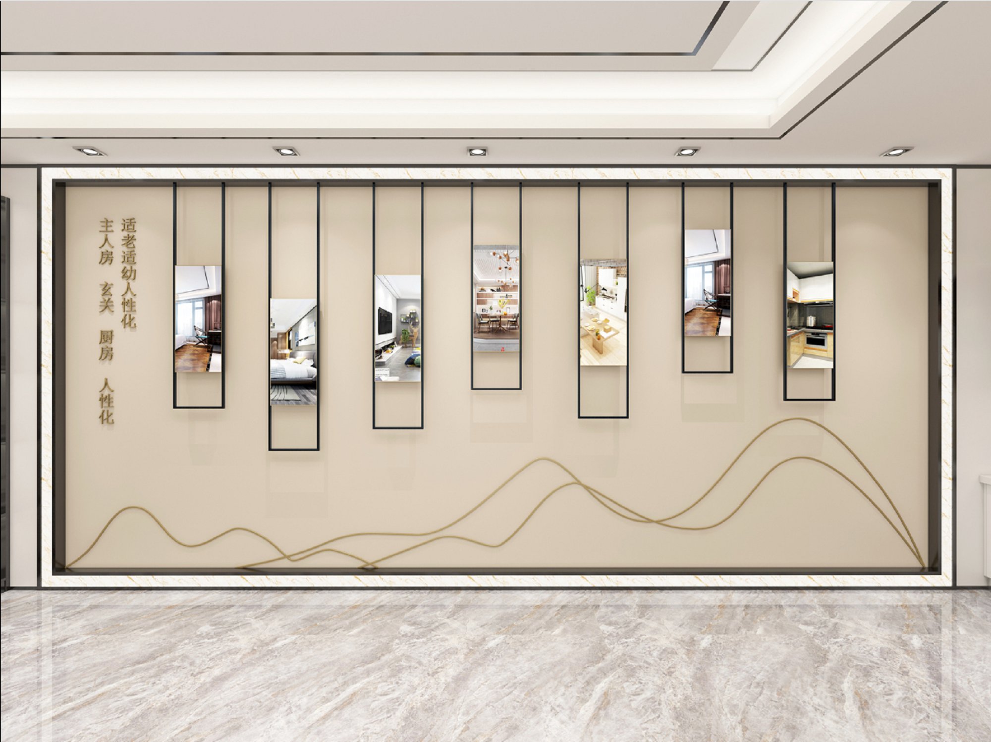 契合中洲府的品牌形象和產(chǎn)品特性,采用開放式結(jié)構(gòu)進行合理的分區(qū),再搭配燈具燈光的效果,襯托出展廳大氣、豪華的氛圍,突出一種簡約、時尚的品味。