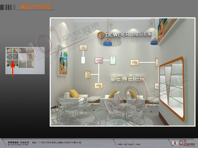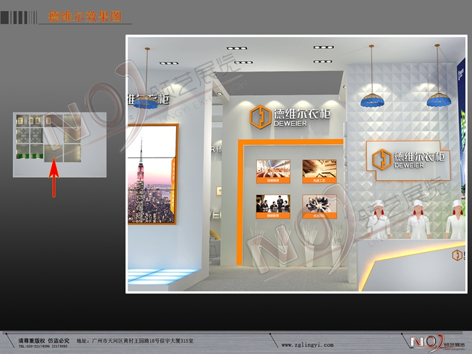 契合德維爾的品牌形象和產(chǎn)品特性,采用框型結(jié)構(gòu),再搭配燈具燈光的效果,襯托出展位時(shí)尚、簡(jiǎn)約的氛圍,突出一種融合、個(gè)性的時(shí)尚品味。