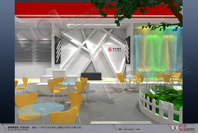 契合奇光的品牌形象和產(chǎn)品特性,采用矩形結(jié)構(gòu),再搭配燈具燈光的效果,襯托出展位時尚、簡約的氛圍,突出一種現(xiàn)代、活力的時尚品味。
