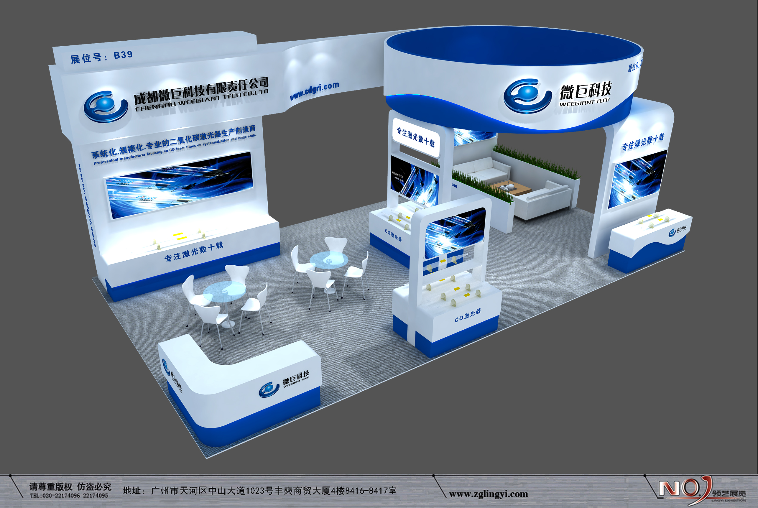 契合成都微巨品牌形象和產(chǎn)品特性,采用開放式的效果,再搭配燈具燈光的效果,襯托出展位現(xiàn)代、突出一種現(xiàn)代、高端的時尚品味。