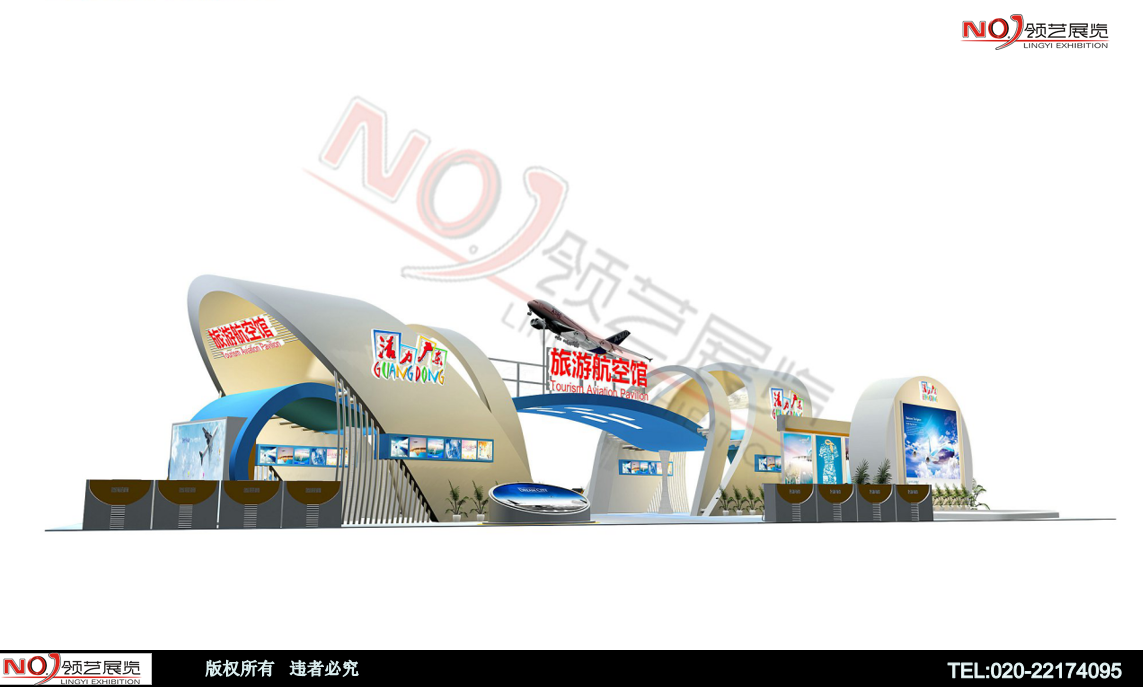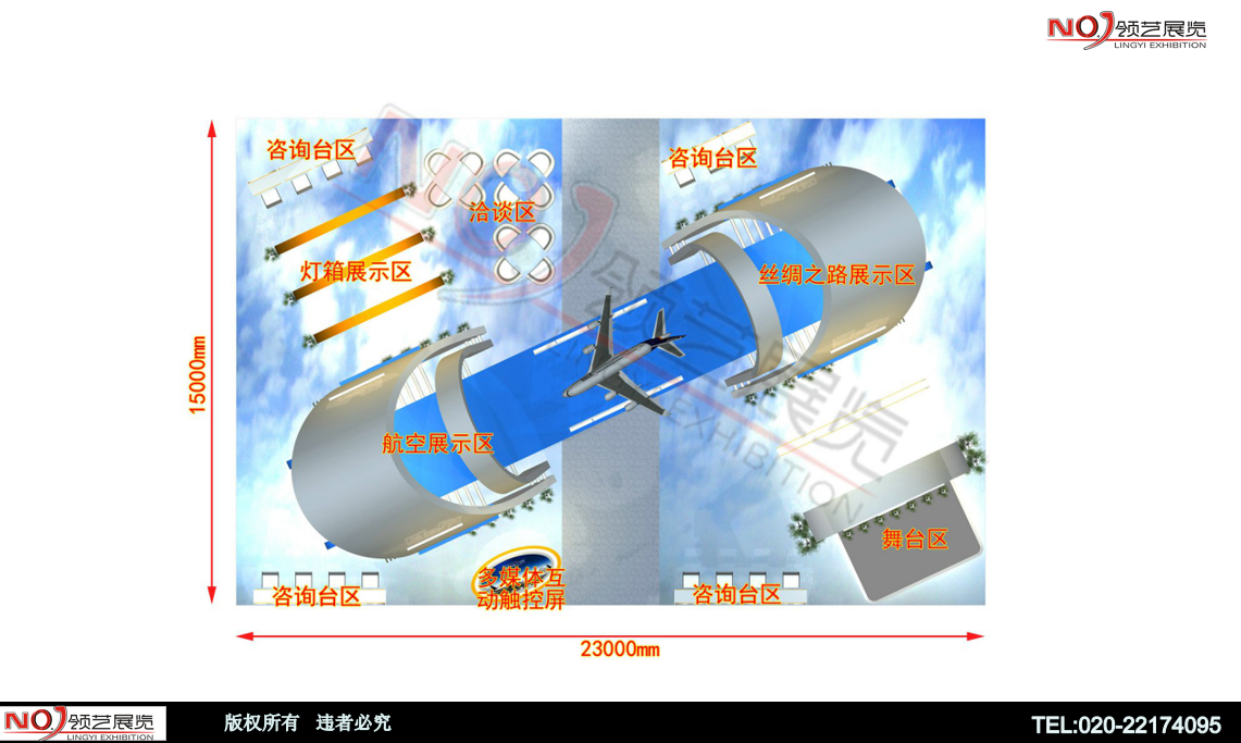 由航空飛機(jī)模型為創(chuàng)意主體,結(jié)構(gòu)采用弧形結(jié)構(gòu),展現(xiàn)海上絲綢之路國(guó)家的航空鏈接再搭配采用聲光電,襯托出展位大氣、豪華的氛圍,突出一種簡(jiǎn)約、時(shí)尚現(xiàn)代感十足的國(guó)際化效果。