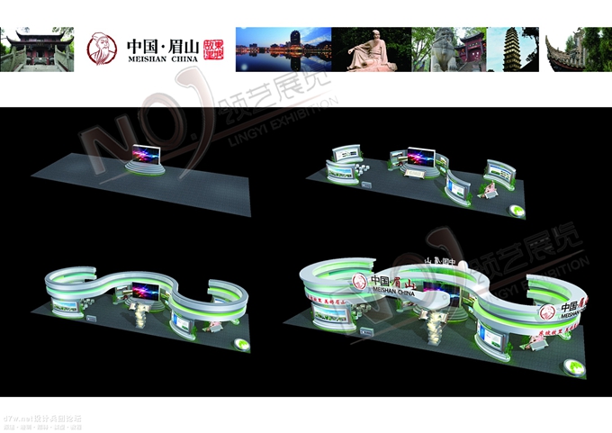 契合眉山的品牌形象和產(chǎn)品特性,采用立體、弧形結(jié)構(gòu),再搭配燈具燈光的效果,襯托出展位商務(wù)、前衛(wèi)的氛圍,突出一種個性、尊貴的時尚品味。
